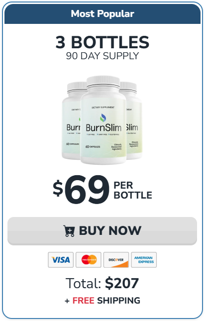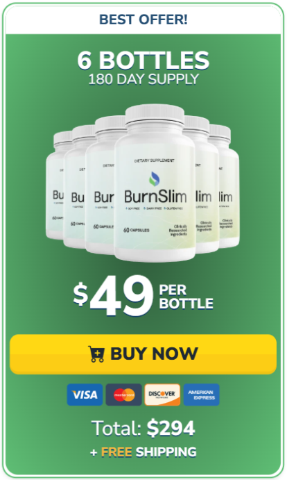 Click the button below to visit the official BurnSlim™ website and secure your discounted package while stock lasts. Choose the 6-bottle supply for maximum savings and free priority shipping — and start your journey toward healthier metabolism, fewer cravings, and sustainable weight management today.
